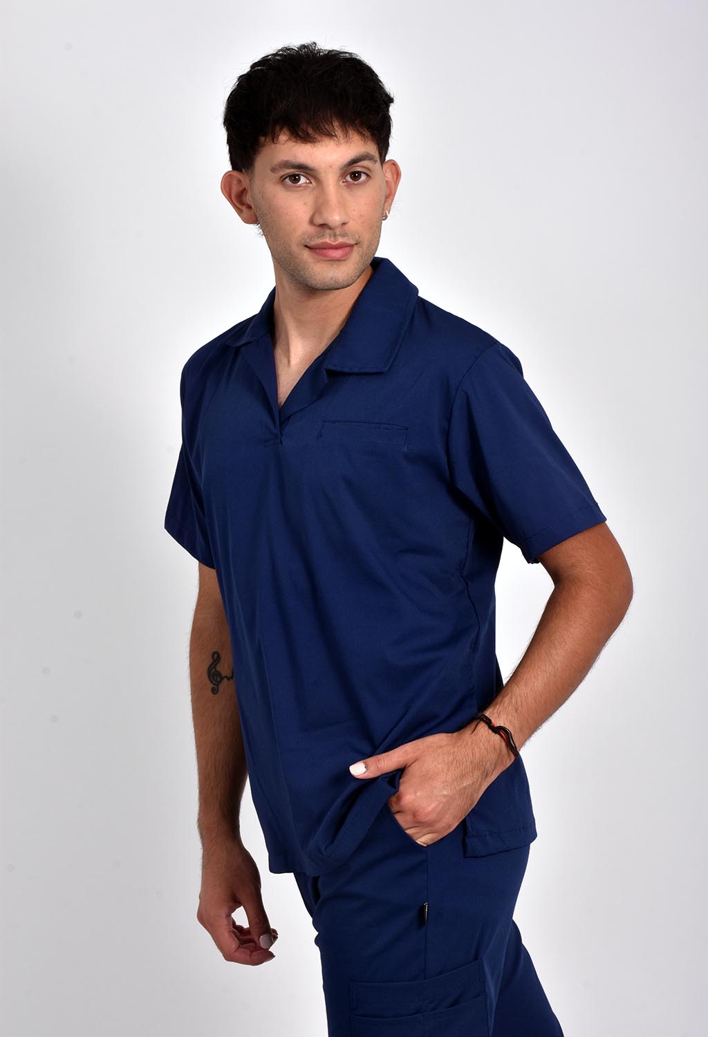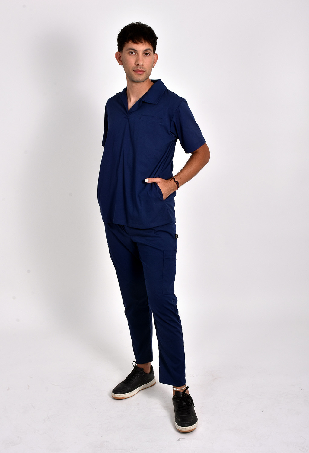 Ambo confeccionado en Arciel Flex con chaqueta de mangas cortas y cuello chomba. Cuenta con tres bolsillos delanteros, uno en la parte superior izquierda y dos laterales escondidos en la parte inferior.