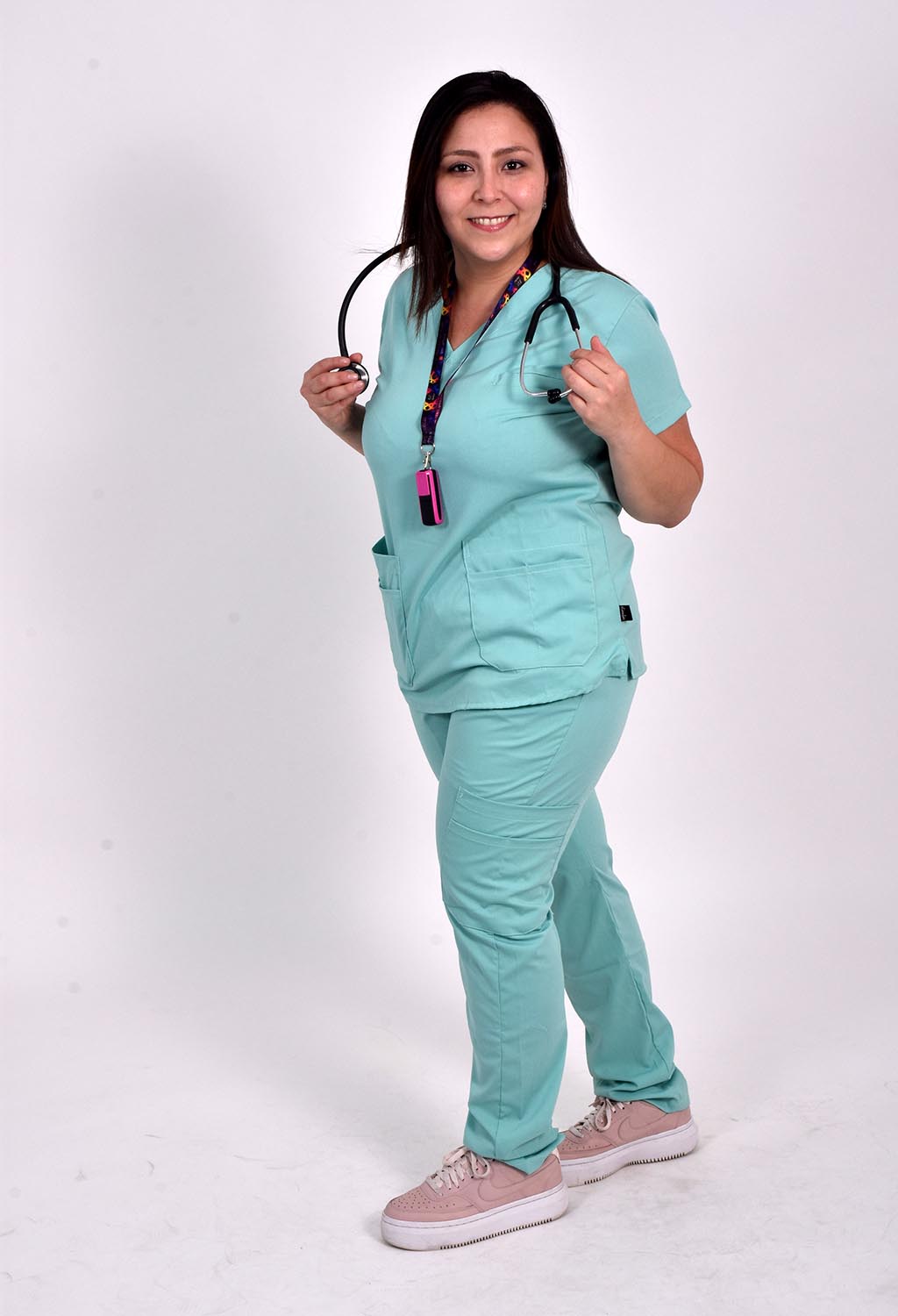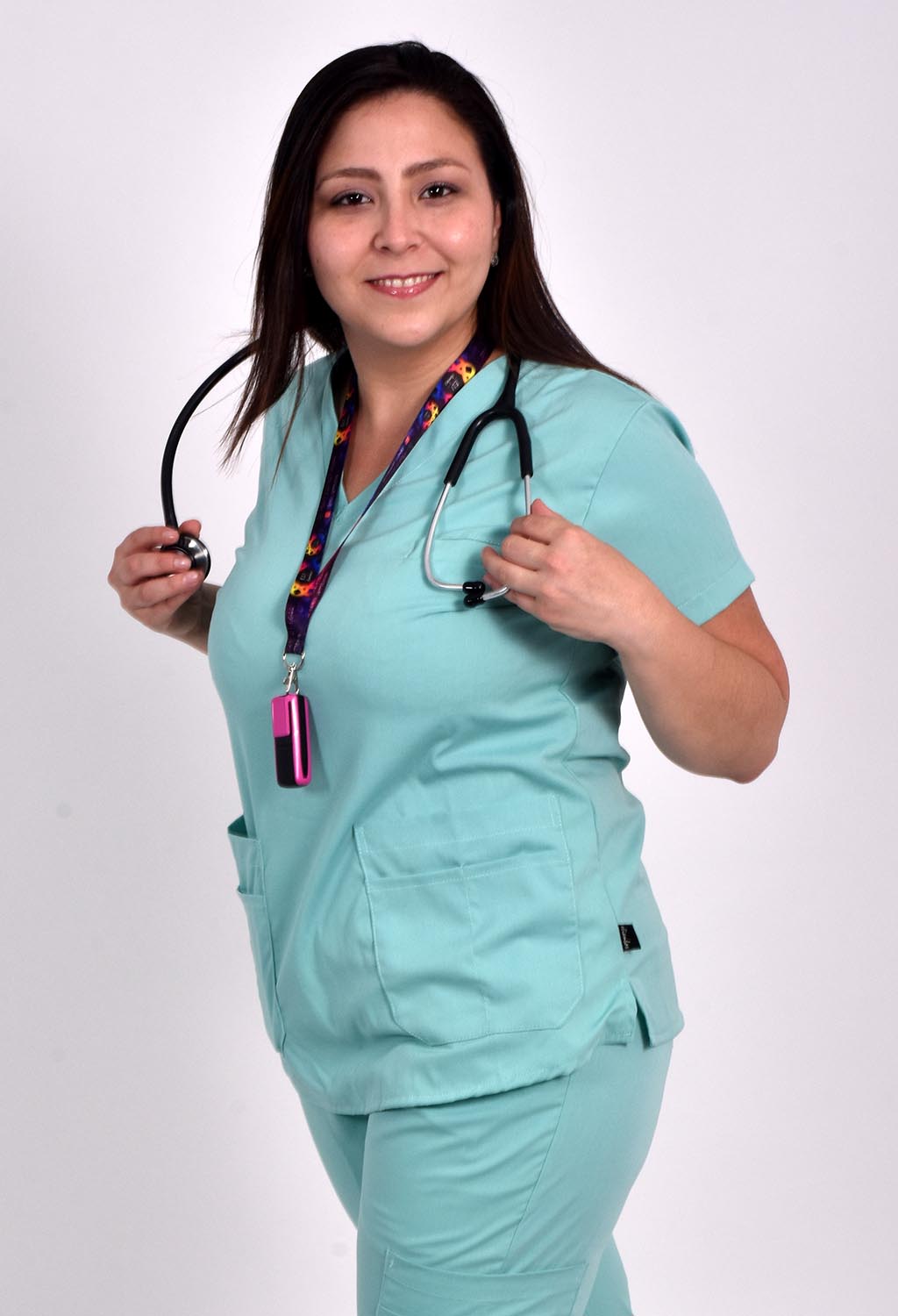 Ambo confeccionado en Arciel Flex con chaqueta de escote en V. Cuenta con tres bolsillos delanteros, uno superior, bolsillo sastre sutil, y dos inferiores expuestos y con compartimentos, ideales para mantener tus herramientas de trabajo organizadas. También, en la espalda, cuenta con una tira ajustable para adaptarlo como más te guste.